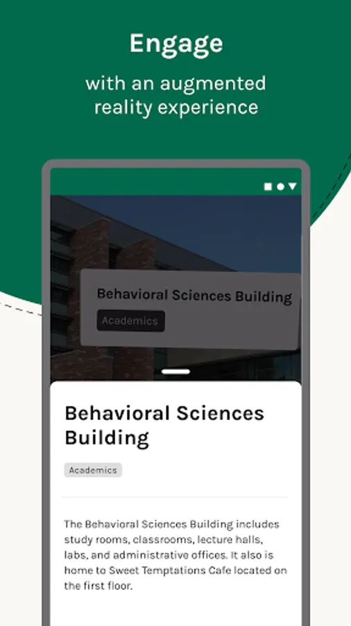 ◦ Identify and learn about points of interest around campus using Augmented Reality