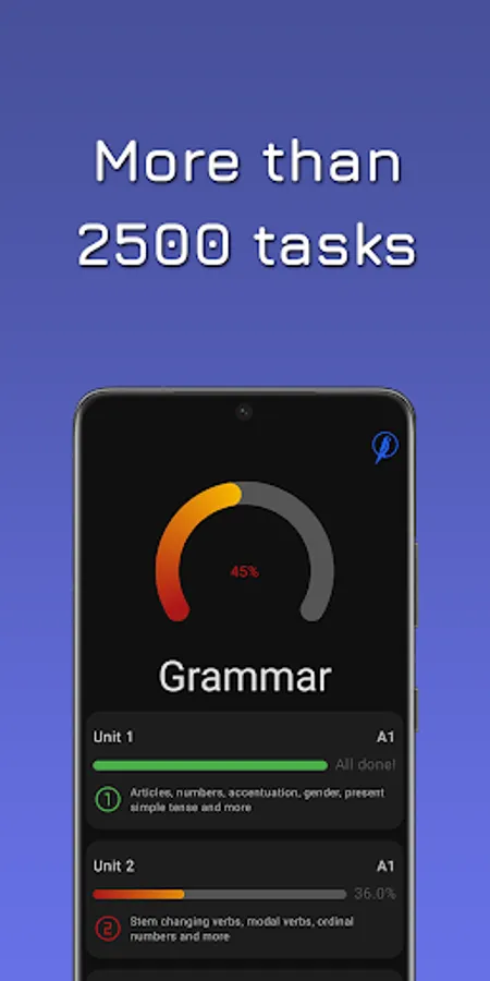 Introducing our Spanish Grammar Learning App! This comprehensive app is designed to help beginners and intermediate learners enhance their grasp of Spanish grammar in a user-friendly and interactive manner. With a well-structured curriculum, the app offers three meticulously designed units that cater to your learning needs and take you on a step-by-step journey to becoming more proficient in Spanish.