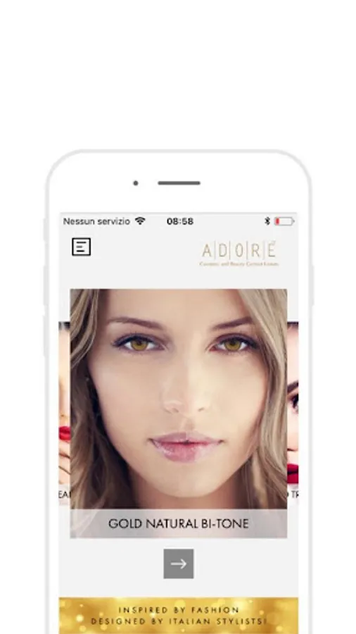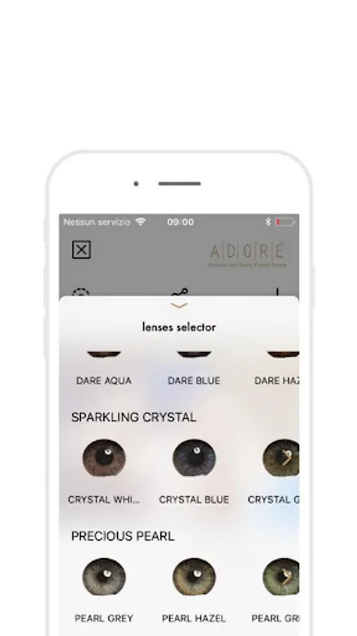 Adore lenses APP has been created by Eyemed Technologies Srl to give the chance everybody to instantly try Adore colored contact lenses on and check the amazing result.