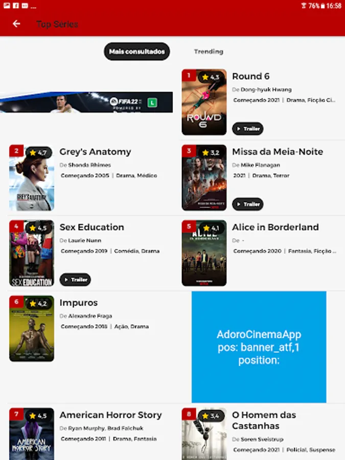 - For each MOVIE and SERIES, find: release date, editor, press and user reviews, trailer, cast, season and episode guide, trivia and more!