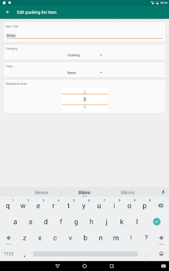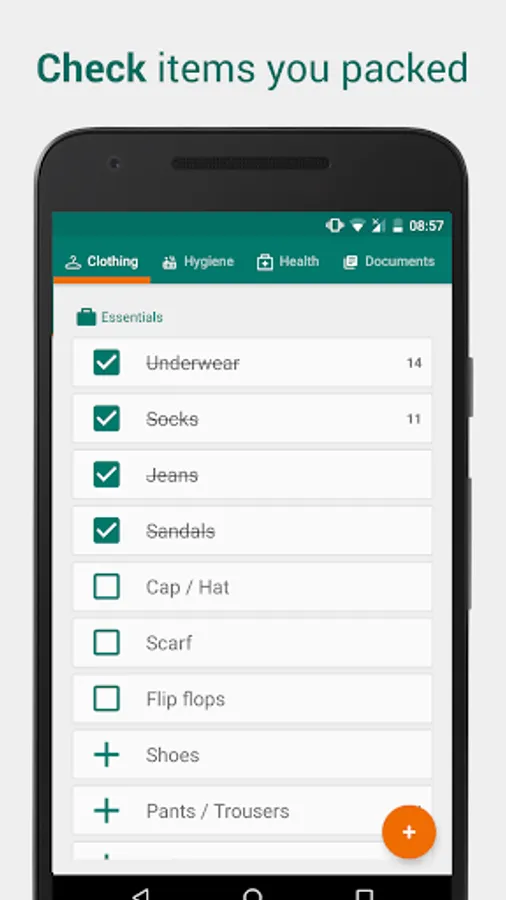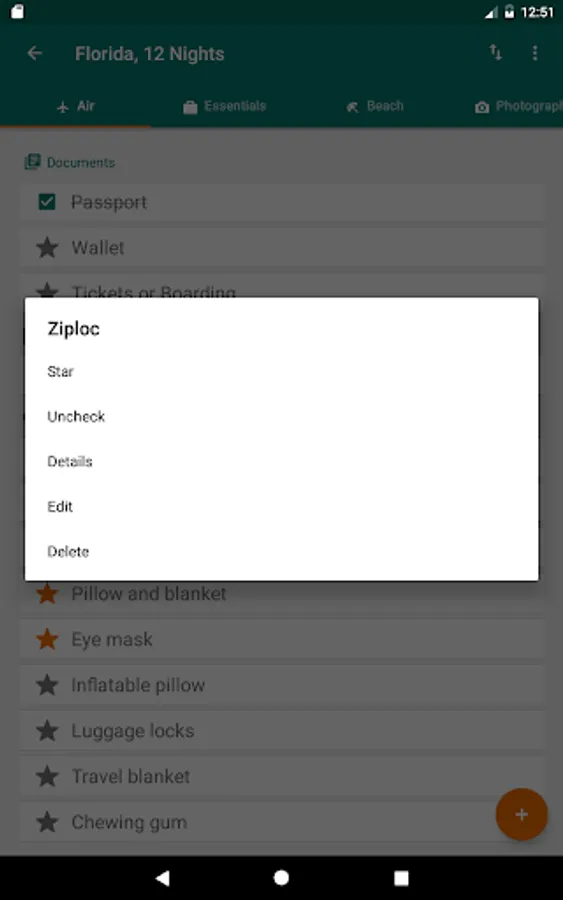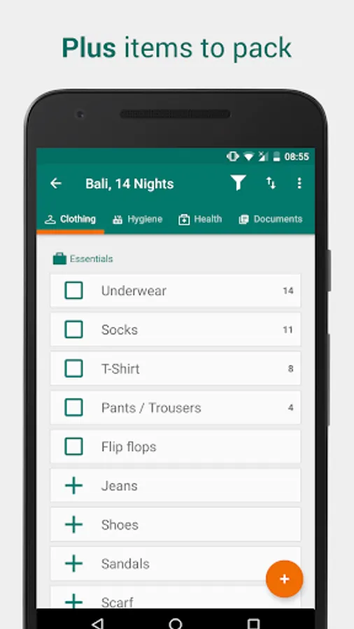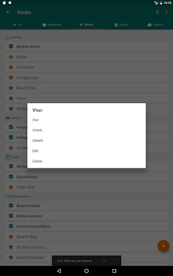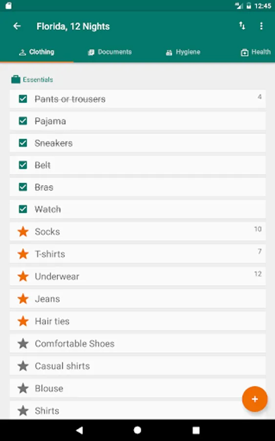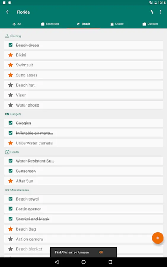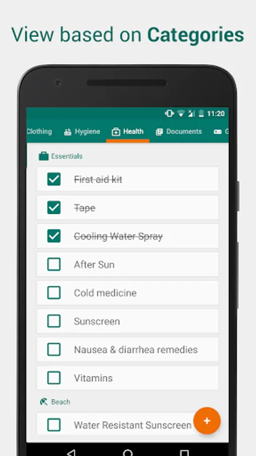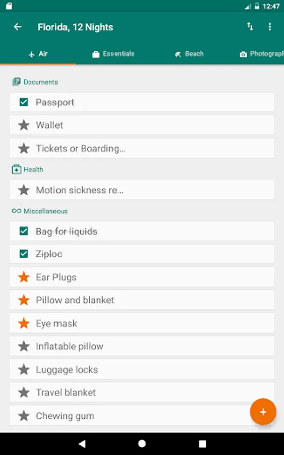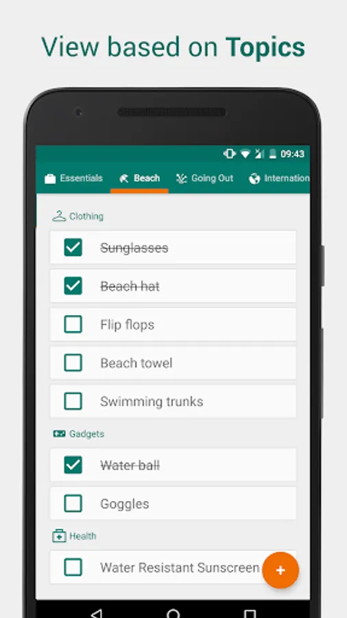 + Switch between lists based on Topics (Essentials, Cruise, Beach, etc) to lists based on Categories (Hygiene, Health, Gadgets, etc) or Bags (Main bag, Carry-On, On person, etc)