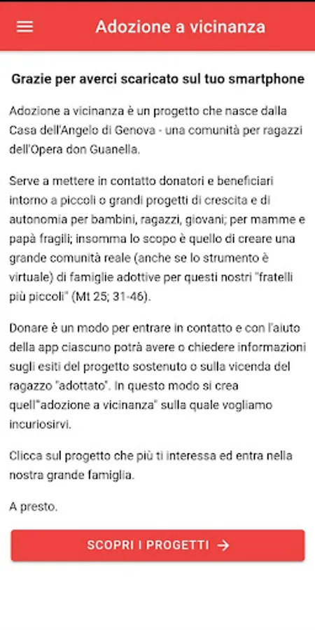 Adoption in the vicinity is a project that was born from the Casa dell'Angelo in Genoa - a community for children of the Opera Don Guanella.