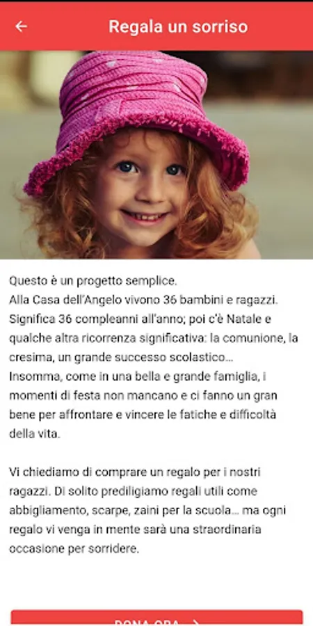 Donating is a way to get in touch and with the help of the app everyone can have or ask for information on the results of the supported project or on the story of the "adopted" boy. This creates that "adoption by proximity" on which we want to intrigue you.