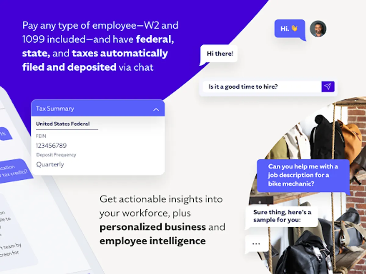● Easily make changes and updates: add new employees, change salaries, give promotions, send bonuses, and more — all in a chat