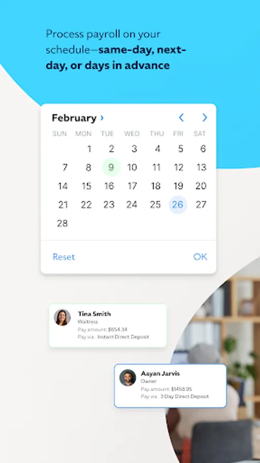 ● Pay workers whenever, however you want: same-day or next-day direct deposit or company check