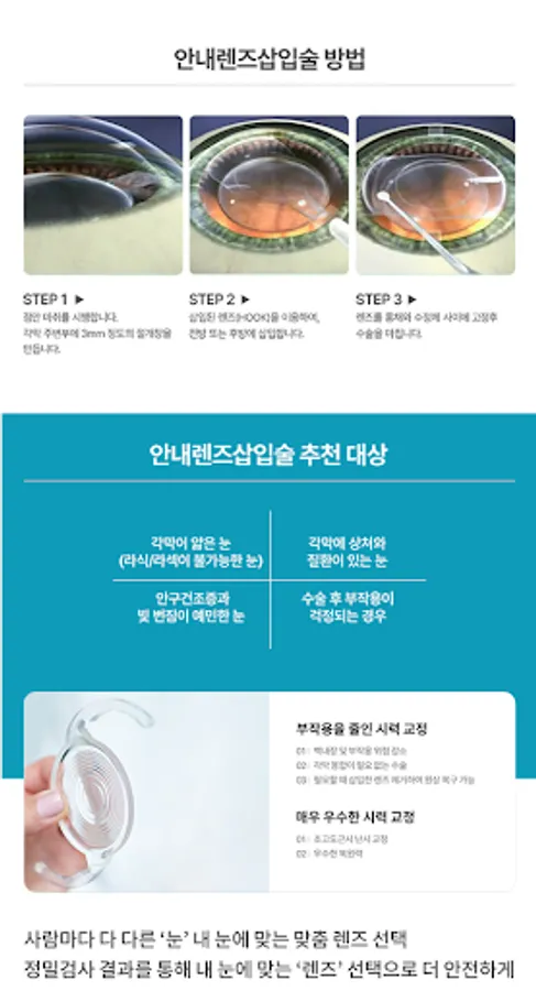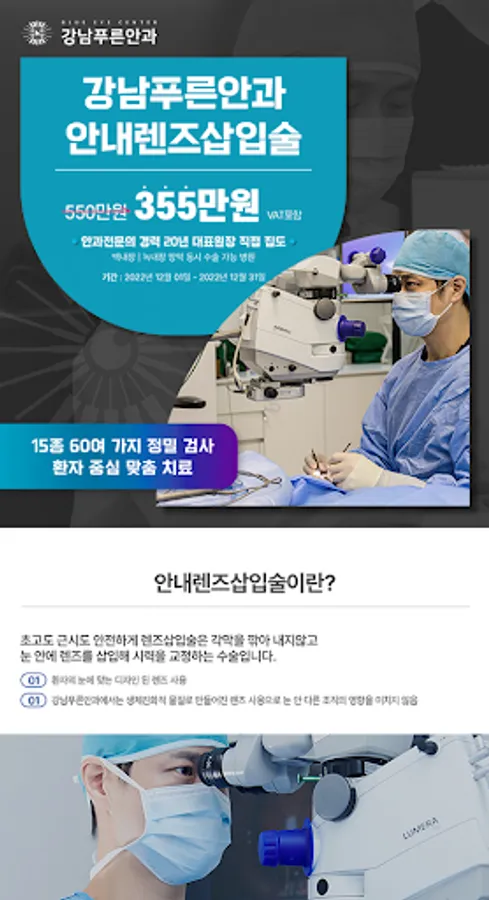 At Gangnam Blue Eye Clinic, lenses made of biocompatible materials are used to adjust the contrast inside the eyes.