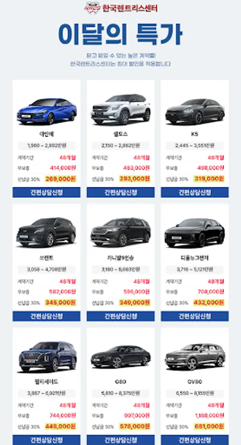 The Korea Rent & Lease Center provides customized portfolios and auto leasing/long-term rental services optimized for users by professional senior advisors tailored to the customer's environment.