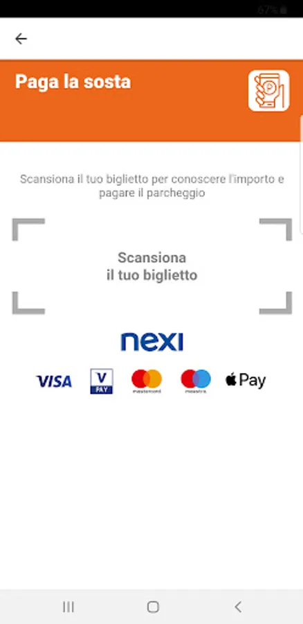 Inoltre, per chi preferisse pagare a fine sosta, non sarà più necessario recarsi in cassa automatica o in assistenza clienti: basterà scansionare il ticket di ingresso al parcheggio e l’importo della sosta verrà visualizzato direttamente sul tuo smartphone, per poterlo pagare in un attimo con i principali metodi di pagamento.
