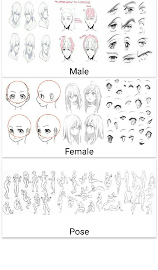 Anime Drawing Reference is an application that displays several reference images to draw easily and quickly to understand there are 3 items, namely men, women and various poses