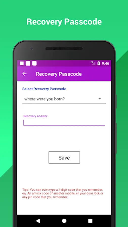 ► Pin Passcode - User can choose any password.