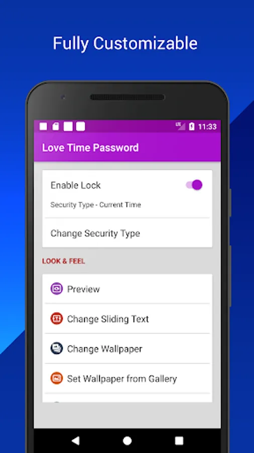 ★ Fully customisable lock screen.