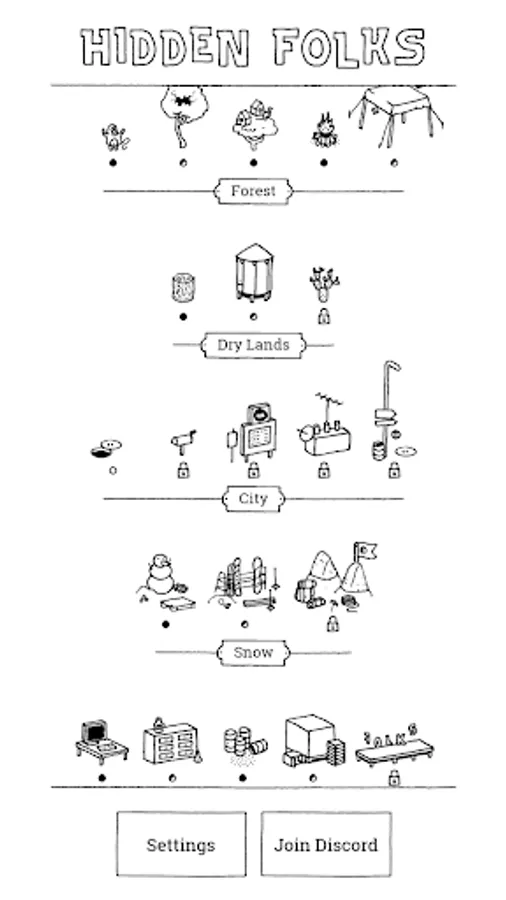 A strip of targets shows you what to look for. Tap a target for a hint, and find enough to unlock the next area.