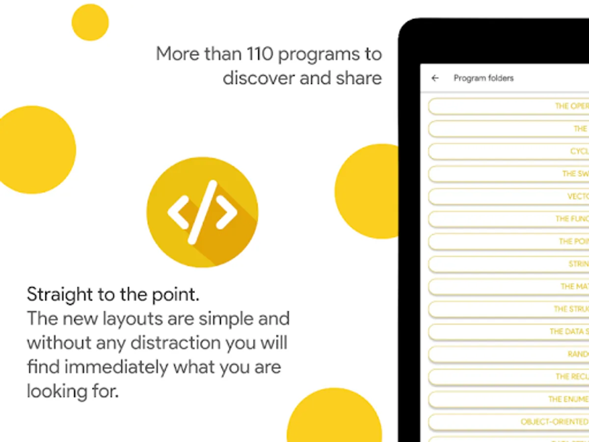 The application has a very simple interface and can be used by everyone. Learn C++ is offline and can be used at any time and place. It is especially recommended for those who want to learn C++ but also for those who want to deepen or review it.