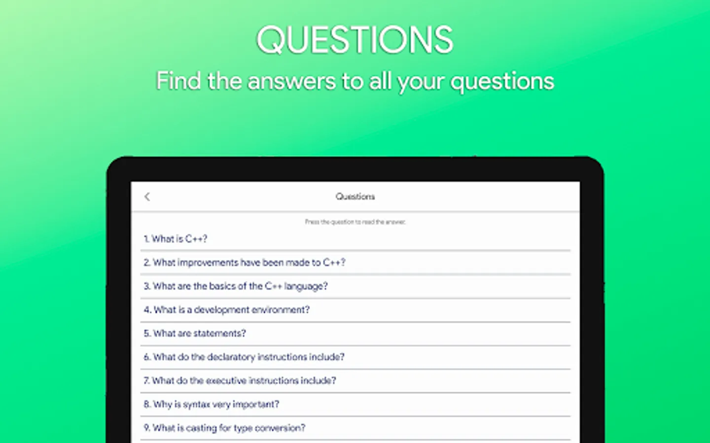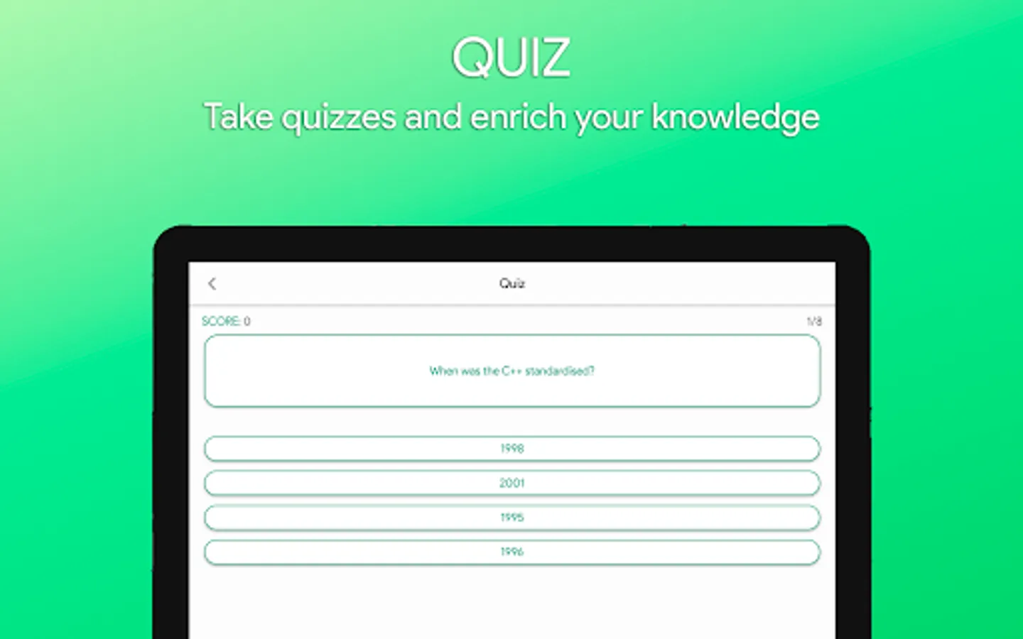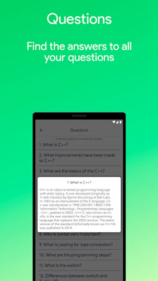 ★ Added a new section: QUIZ, answer Quizzes and expand your knowledge of the language C++!