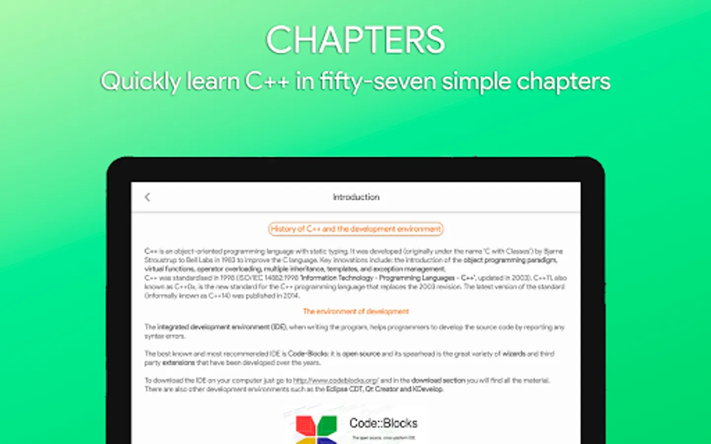 Do you want to learn the C++ programming language without advertising and without using books? Download this fantastic application!