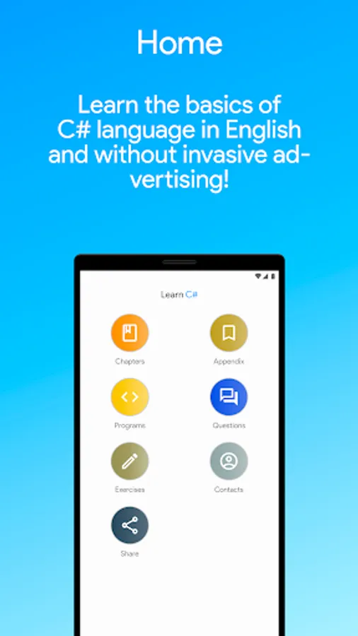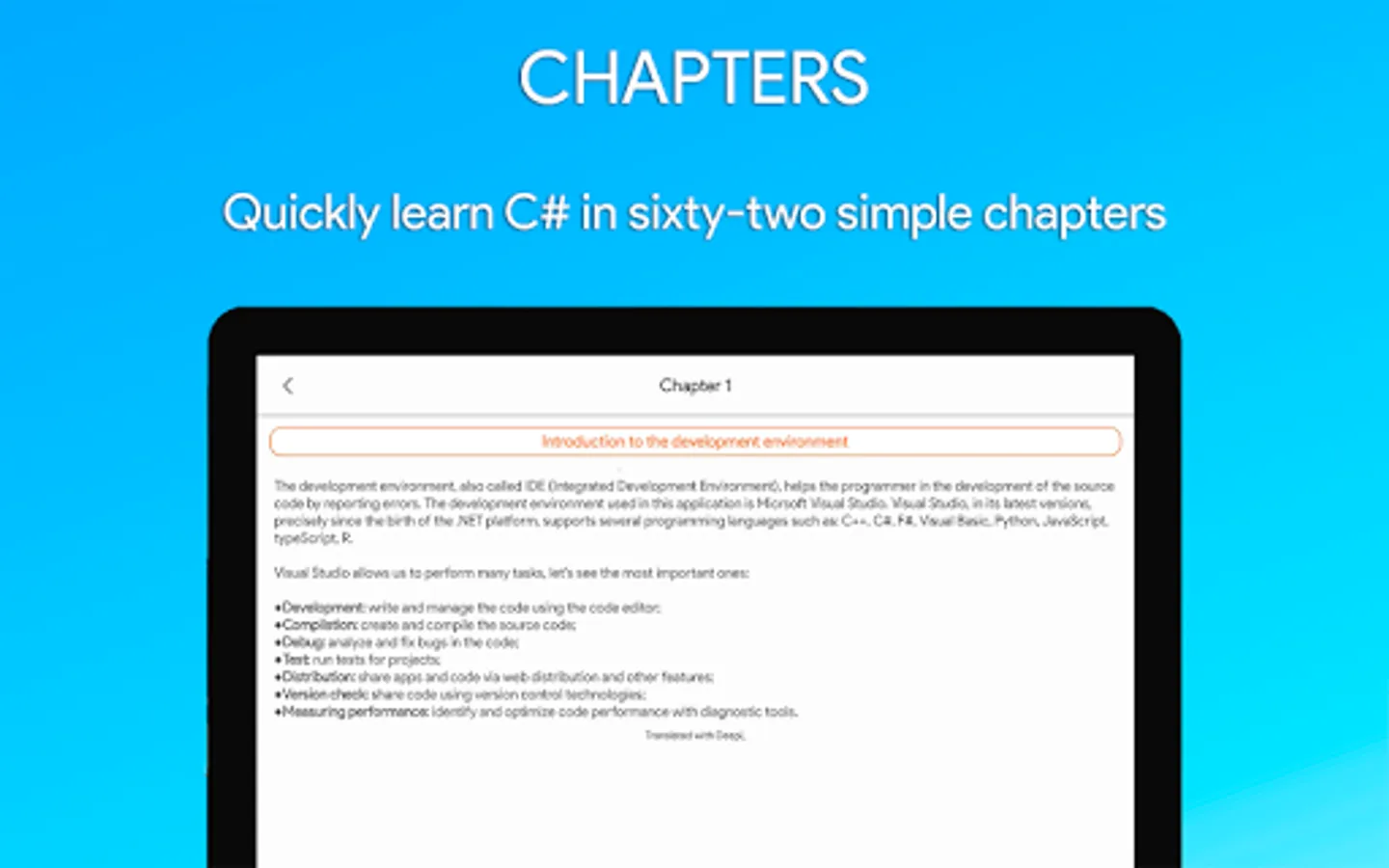 Do you want to learn C# programming language in English and without invasive advertising? Download this fantastic application!