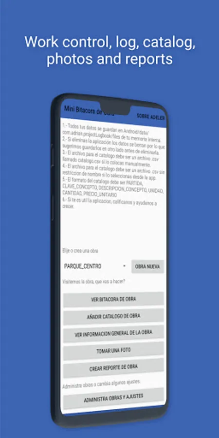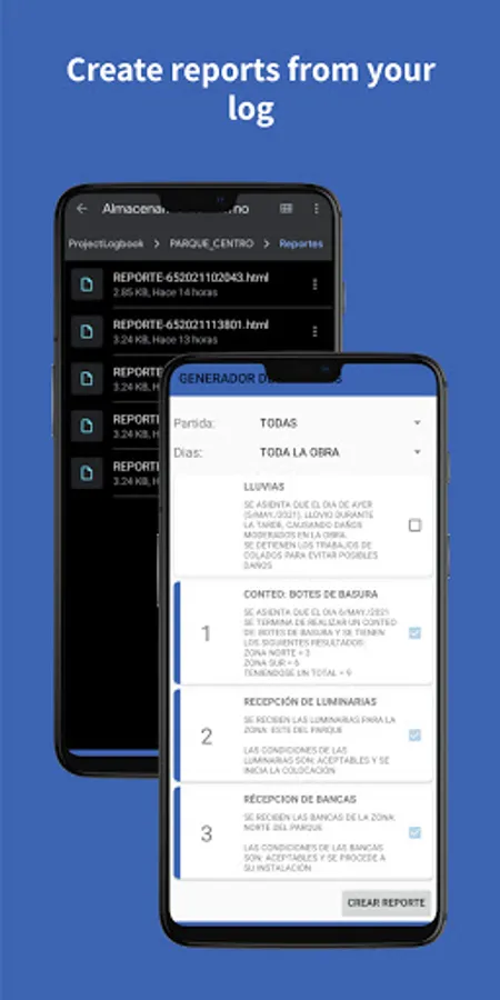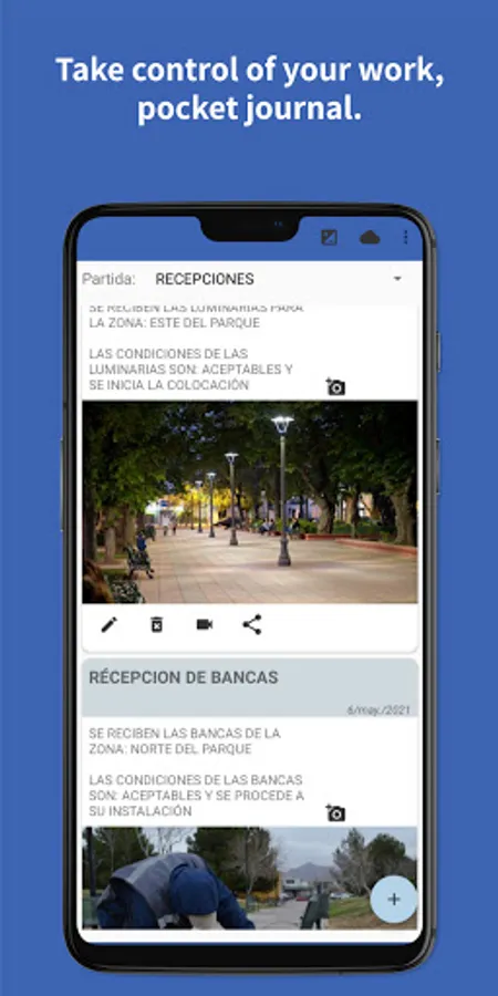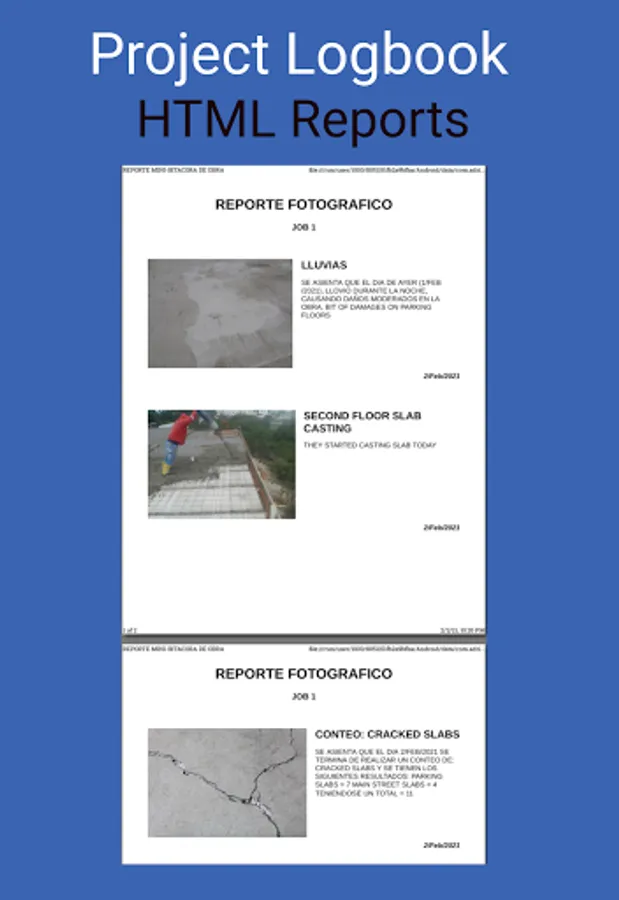So with this app you can take control on you daily activities, taking pictures of everything you find important, saving notes of each important thing that happens at civil work, and creating reports.
