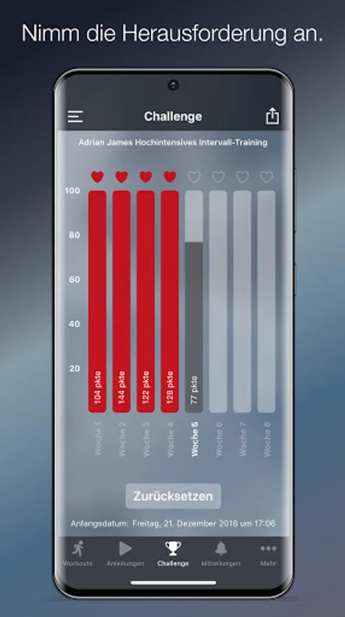 Ranked #1 in over 10 countries, Adrian James High Intensity Interval Training includes clear training videos with an easy-to-understand workout mode, offering a challenge at every level. Motivate yourself with the 8-Week Challenge and earn points for every workout you complete.