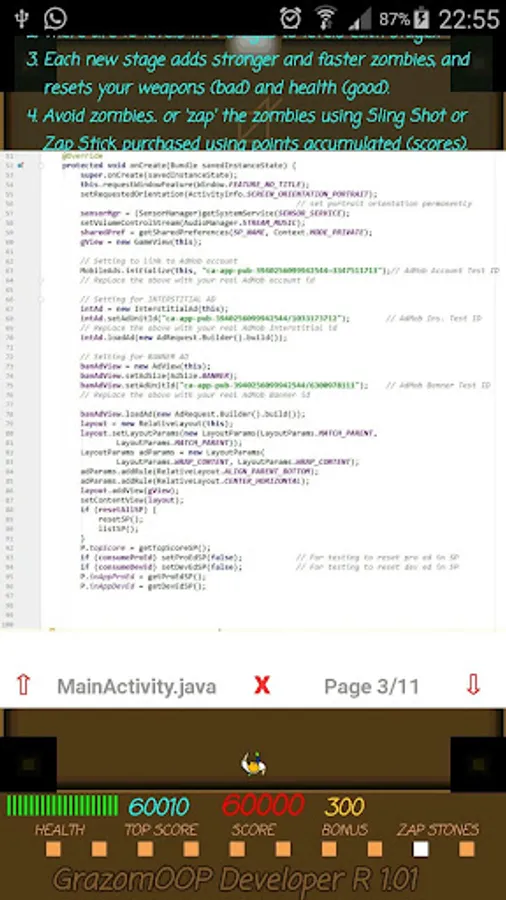 This is an integrated educational software in a form of a complete Android game that allows you to see the ENTIRE SOURCE CODE of the game app. That is more than 3500 lines of code!