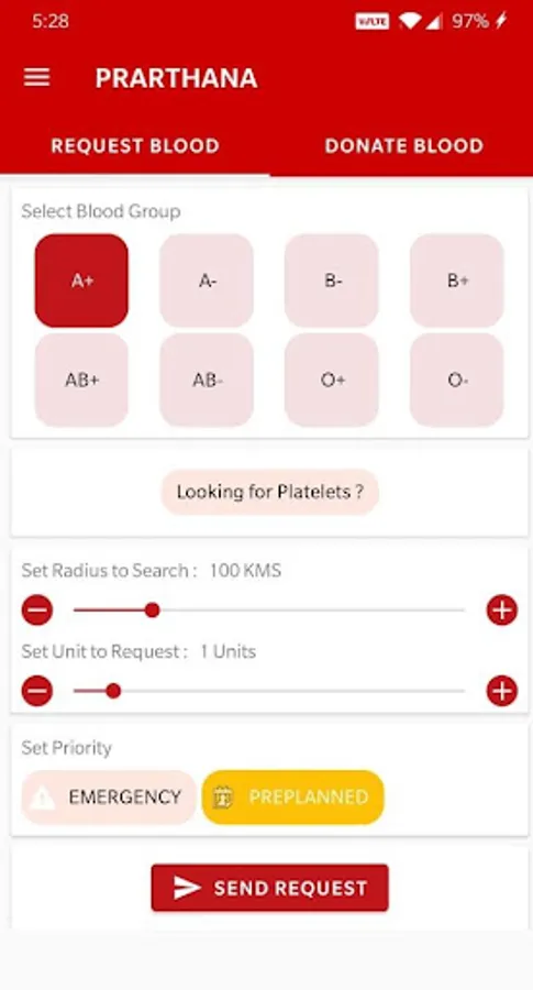 Prarthana Blood donation app, a unique platform where donor and recipient both can get together and meet their blood requirement needs.
