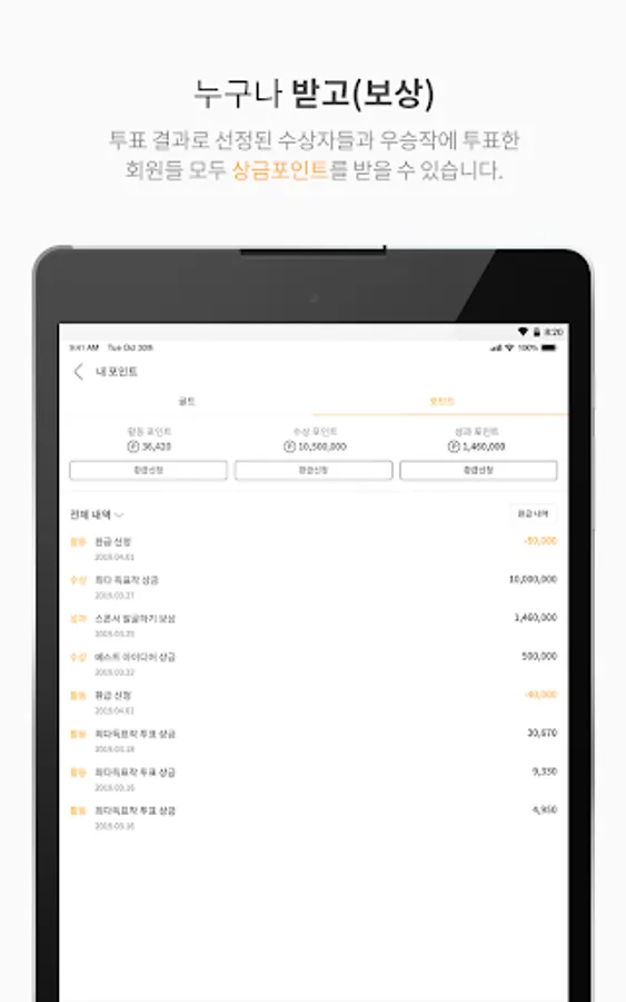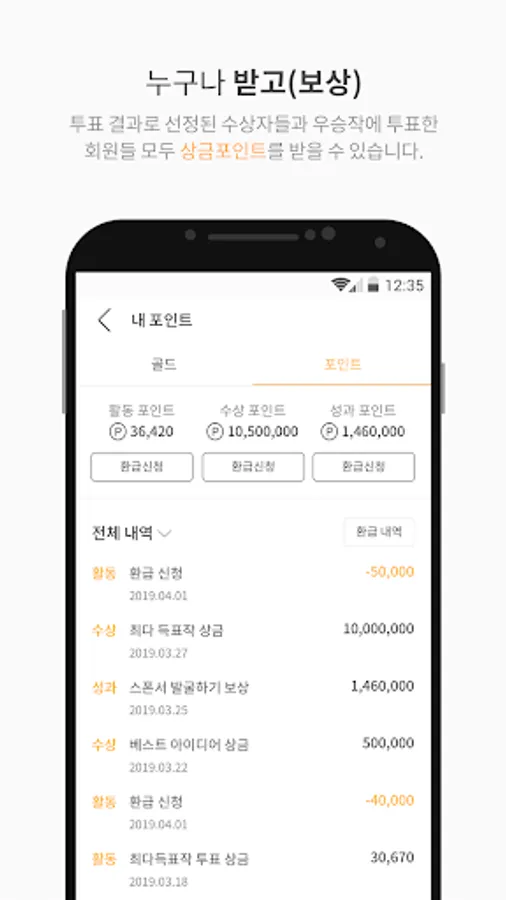 4. Reward: Reward points received by the creators of the works that received a lot of votes, and members who voted for the most votes received a pre-set prize points.