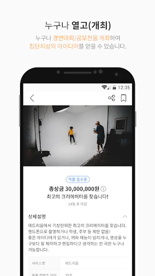 By digitizing contests and competitions that are operated in the traditional way, we aim to build a cultural content platform that maximizes the use of collective intelligence ideas through the participation of everyone in the general public.