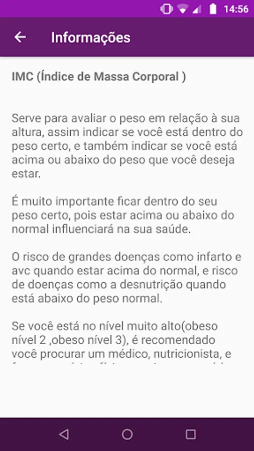 With this app you can calculate your BMI (body mass index).