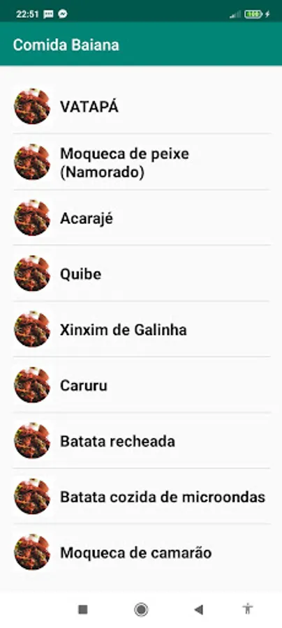 The application brings you several culinary recipes from the state of Bahia such as acarajé, chicken xinxim, caruru, fish moqueca, VATAPÁ and other delicious dishes.