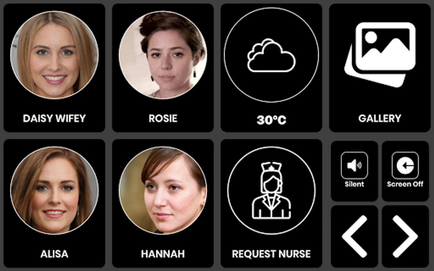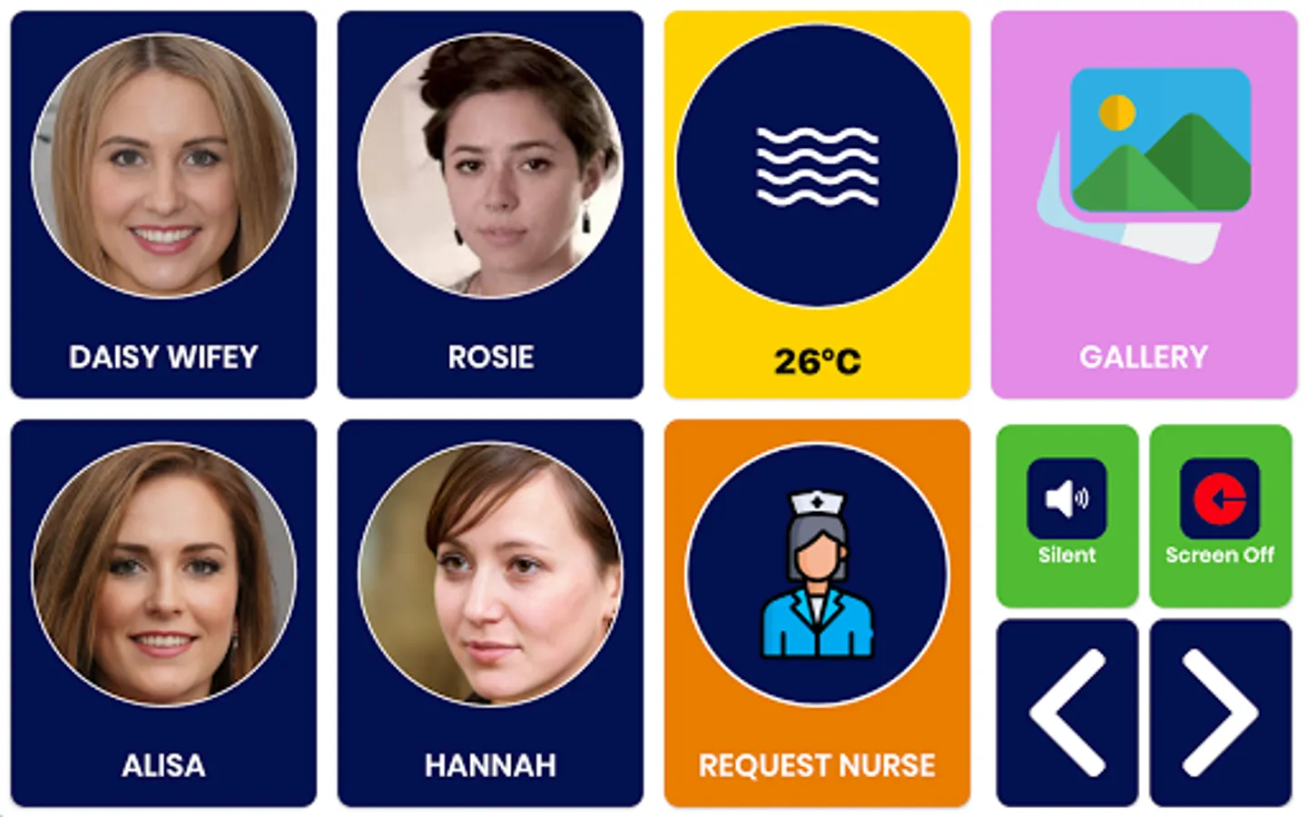 features games, dementia friendly apps and local cctv links. This helps to occupy and entertain the resident to ease the three plagues of loneliness, helplessness and boredom.Ernie Connects provides a video link to the resident’s GP, District Nurse