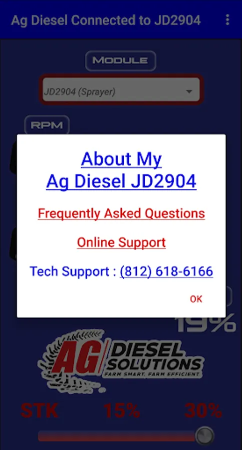 Allows users to connect to their Ag Diesel Solutions Module through Bluetooth. The Ag Diesel Connect App is your switch for the module, information center for your machine, and quick link to our website.