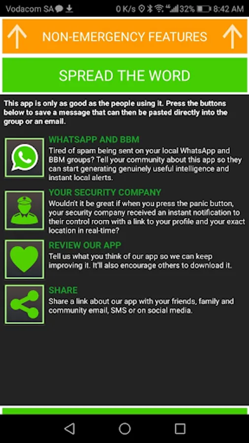 A panic button app for community organizations across South Africa. A panic button app which is endorsed and promoted by local residents associations wishing to 'arm' their residents with the ability to get help fast in an emergency.