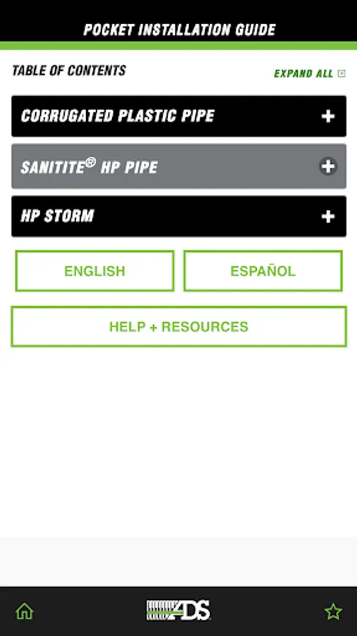 The ADS Installation Guides App provides information on the typical installation requirements for ADS plastic pipe used in both storm and sanitary sewer applications. Installation instructions are written in English and Spanish for SaniTite HP, HP Storm, and N-12 Pipe.
