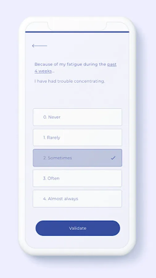 The Walking Endurance Test: This test measures the distance covered in 30 minutes or the time taken to walk 1 kilometer. The Six-Minute Walk Test: This test measures the distance you can walk at a steady pace within a maximum of 6 minutes. The Dexterity Test: Lasting approximately 2 minutes, this test involves tracing 6 consecutive shapes (straight line, curve, sine wave, sawtooth, sigmoid, spiral) using your finger. The Cognitive Test: Taking around 2 minutes, this test aims to quickly associate a symbol with a number and a number with another number. The Vision Test (MVT): Lasting approximately 10 minutes, it aims to measure your visual acuity under low-contrast conditions.