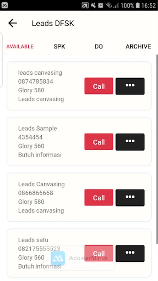 Customer filled a form in the website. In a few minutes admin will assign customer to sales data. To manage this customer data, sales must be logged in to application. Sales can show list of customer data and sales can follow customer data by phone and update data to be SPK, DO or become archive.