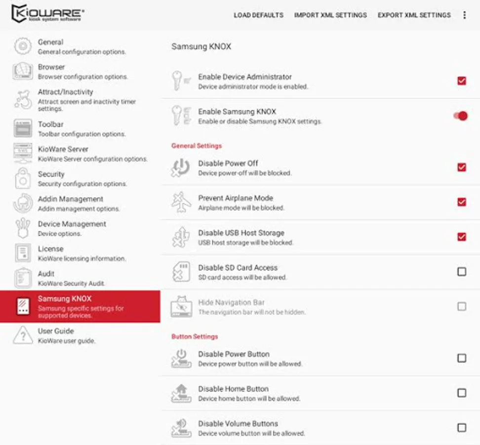 New features for KioWare Full for Android using Samsung KNOX