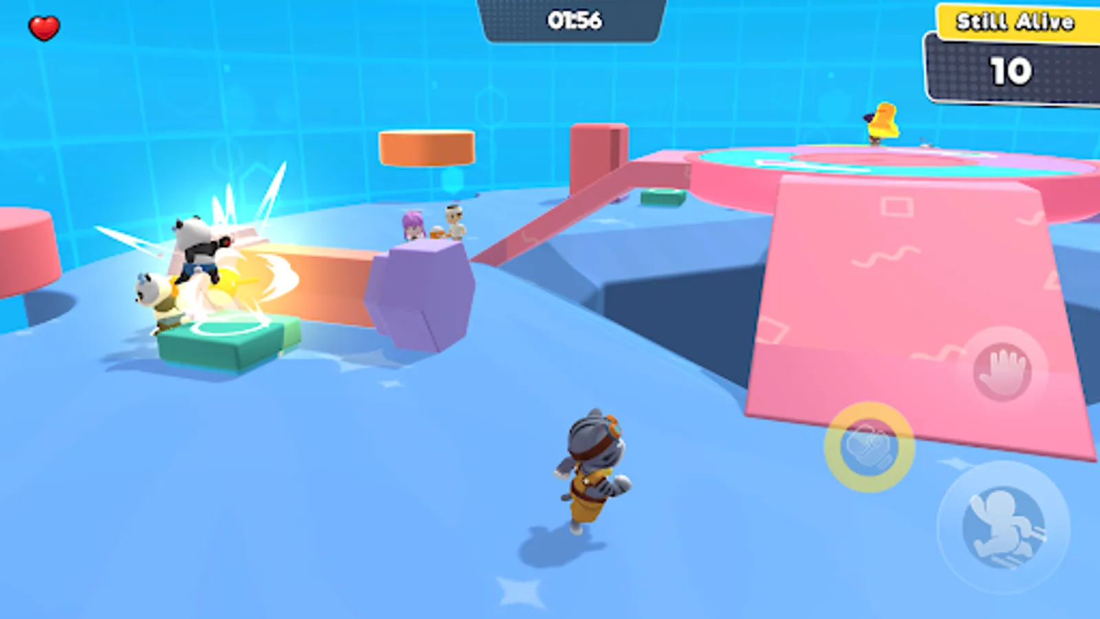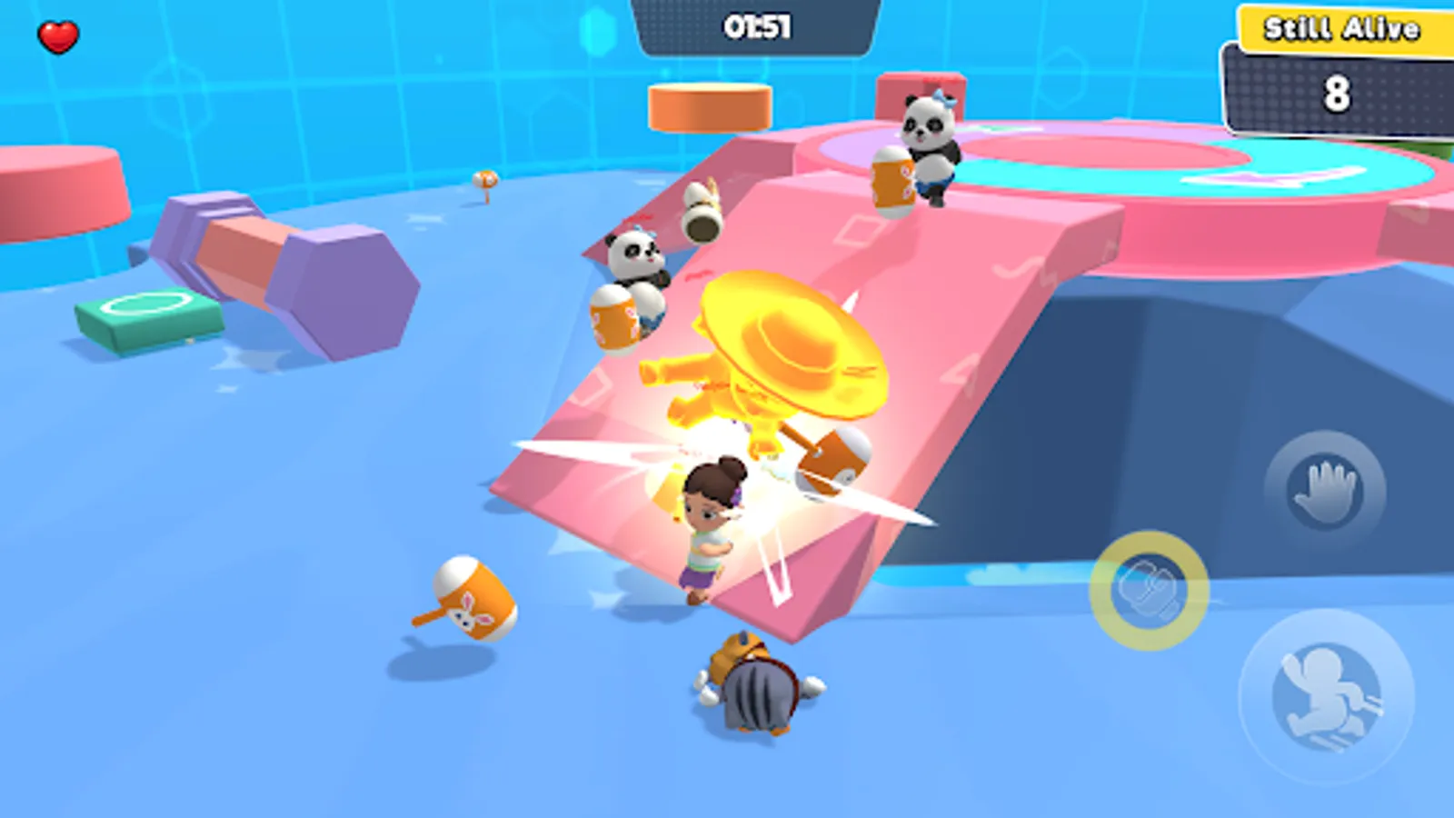 Fight in “Super Arena”, a fast paced Battle Royale. Attack other players using powerful hammers, rockets and bombs. Test your reaction speed and strategy. Can you become the last one standing?