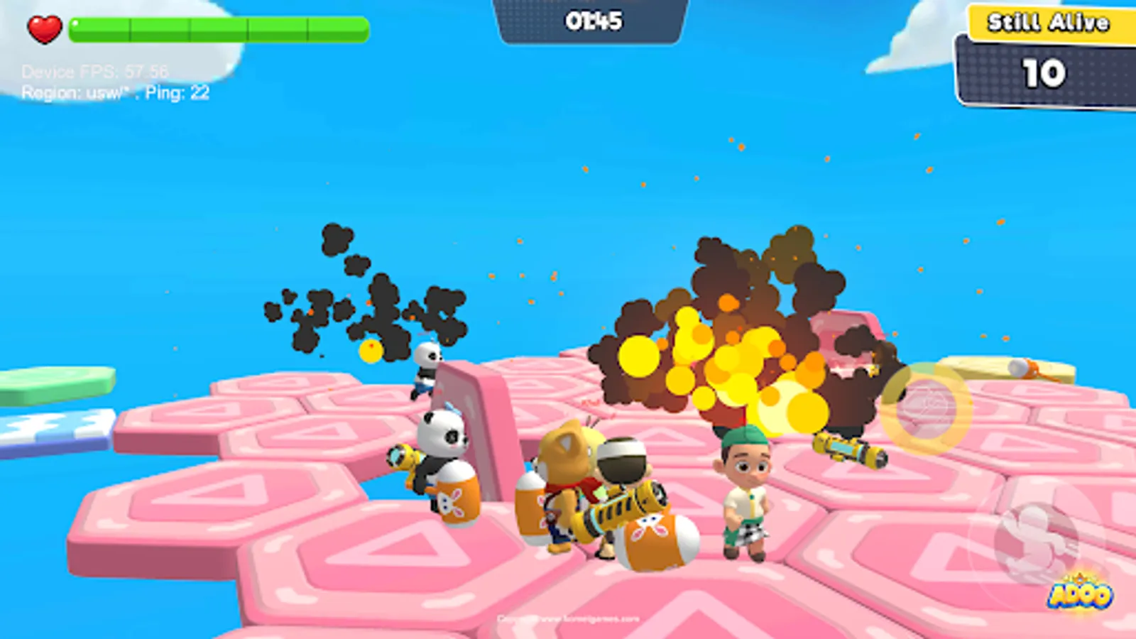 Open world mobile gaming experiences. Players can solve puzzles, battle royales and explore cities. Explore Adoo, a cool city with giant robots, fun parks, hot air balloons and cute stores. Go collect coins and unlock cute characters, fashionable accessories and cool weapons
