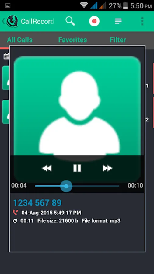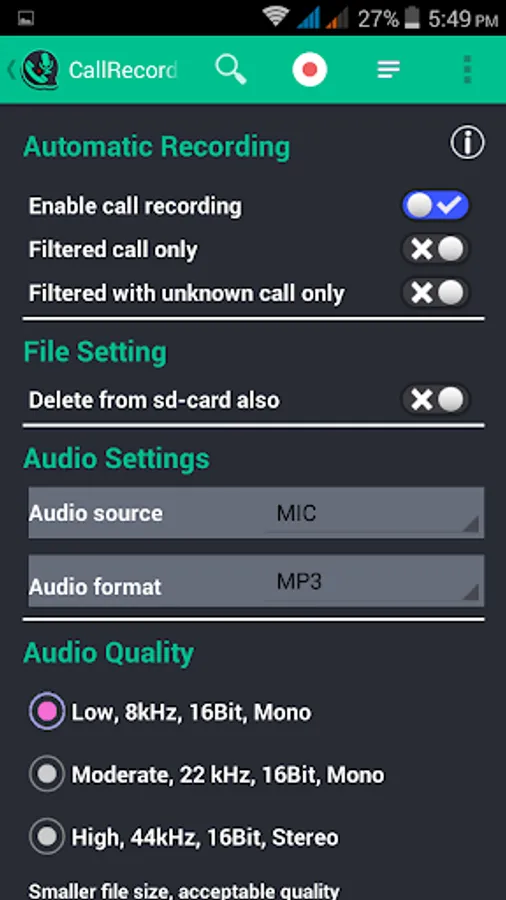 • Recording Filter. You can choose between recording all calls, only calls made with your contacts or calls from unknown numbers. It is even possible to choose which contact from your contact list will be recorded or ignored.