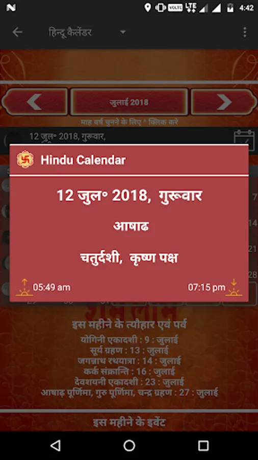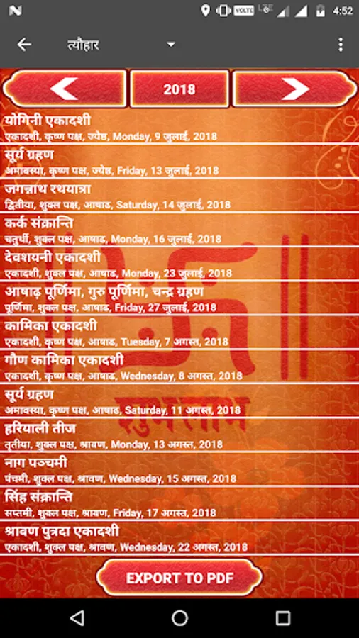 6. List of Ekadashi/Purnima/Amavasya or any tithi for Whole Year could be Export in (Excel/PDF)