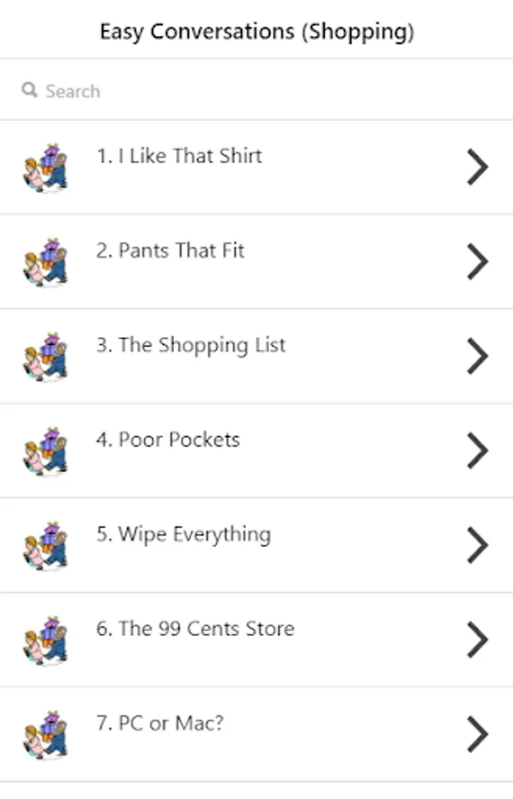 You will learn a lot of English vocabulary including correct pronunciation. Vocabulary and conversation, with a few simple words are used in everyday shopping. In Shopping