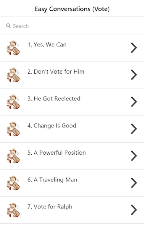 All conversations are suitable for very inexperienced. To practice pronunciation and speaking slowly, clearly listening comfort.
