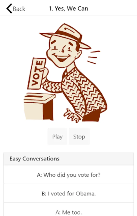 You will learn a lot of English vocabulary including correct pronunciation. Vocabulary and conversation with a simple vocabulary that is used in everyday life. The ballot