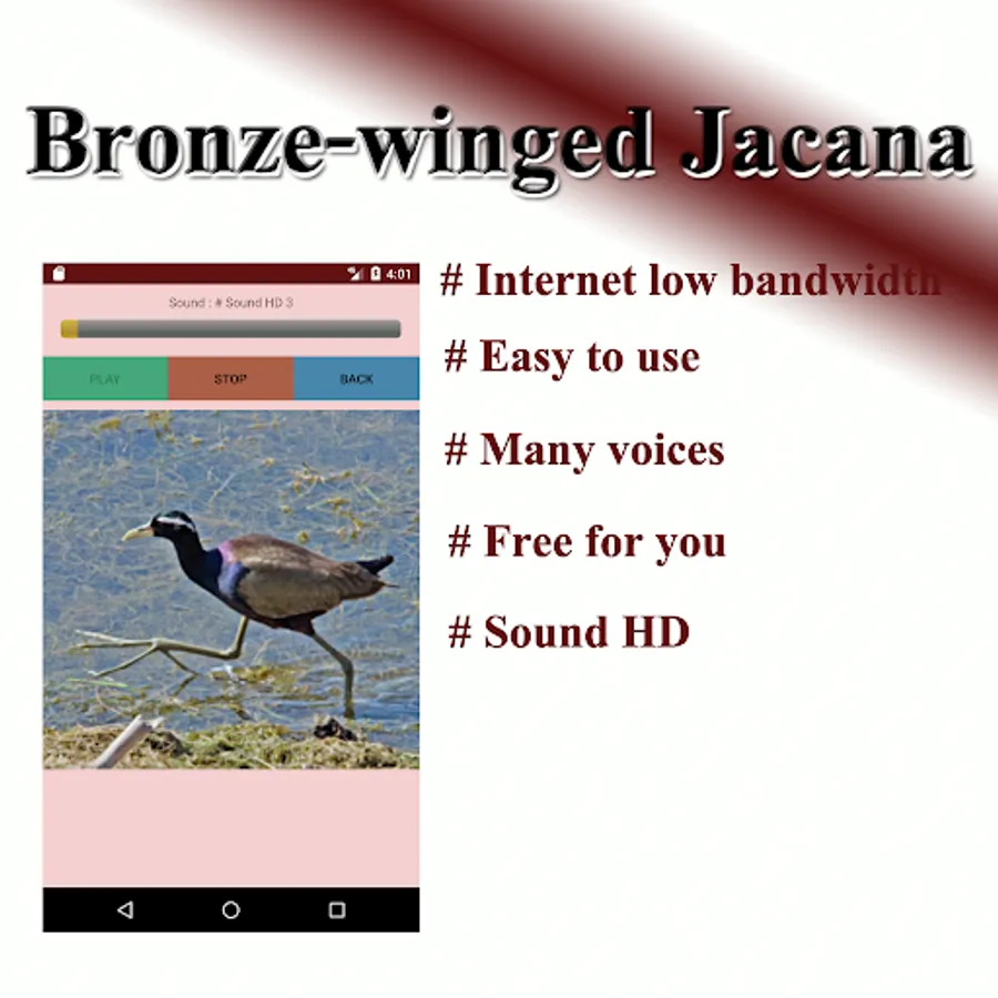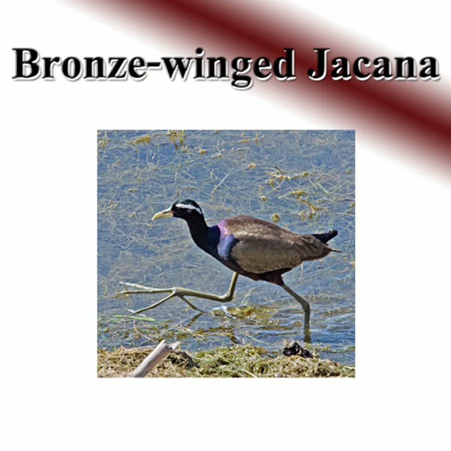 Characteristics: male and female are similar. The mouth of the mouth is yellow with a red band. The forehead is gray leather, head, neck and lower body black. There is a white band over the eyes. Long haul to the nape The back and wings are brass, green legs, very long feet, about 28 centimeters long, like to walk in the area with plants floating up densely. To catch insects and small aquatic animals as food. In breeding season The female will pair with more than one male, resident birds, common marshes and swamps.