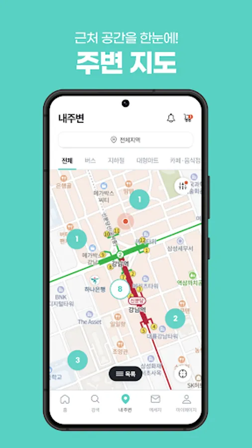 4. Around me: Check at a glance what kind of space (media) there is around me through the map view!