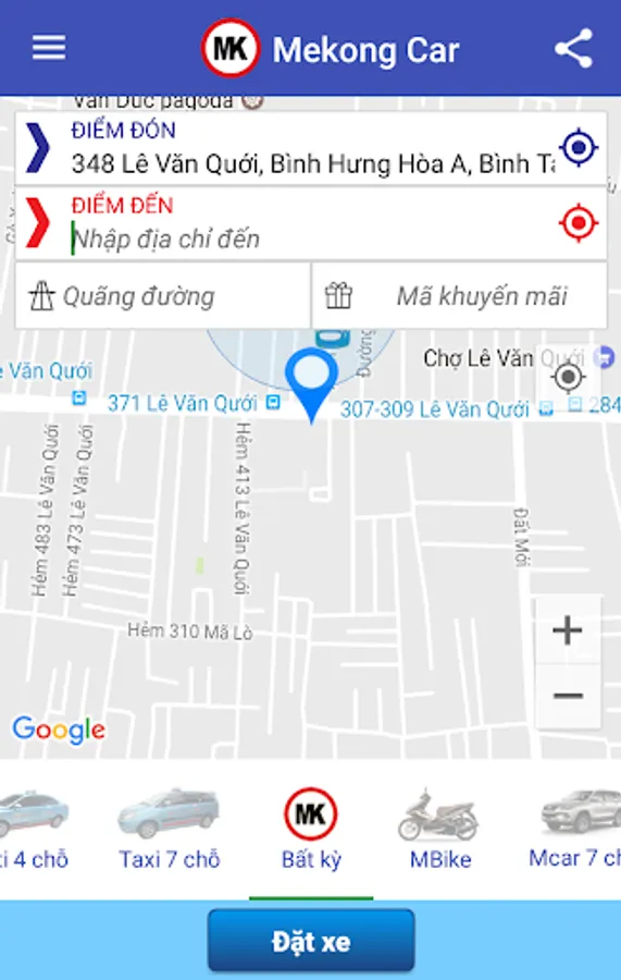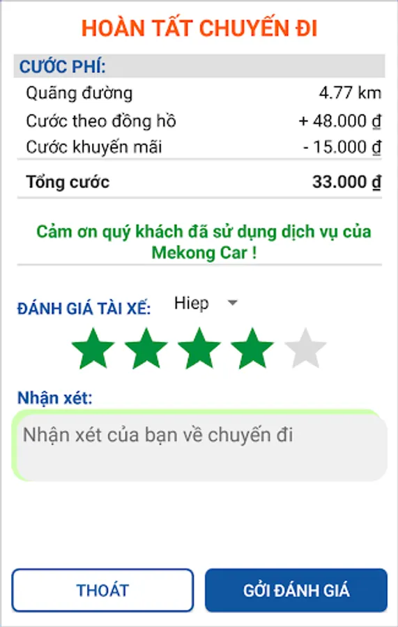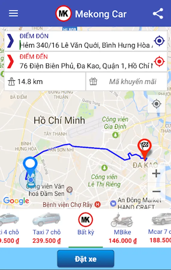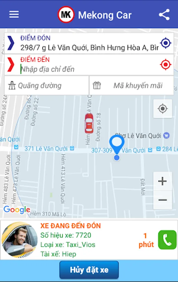 • With the use of applications Mekong Taxi car set with just a few taps on your phone screen customers have successfully put and wait for a few minutes will have to pick up the car.