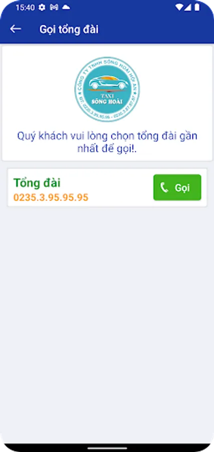 Just call: 0235.3.95.95.95…………..or download Song Hoai Taxi App and press the button “BOOK CAR” on your mobile device, you can experience the service “Green Taxi-Clean Environment”