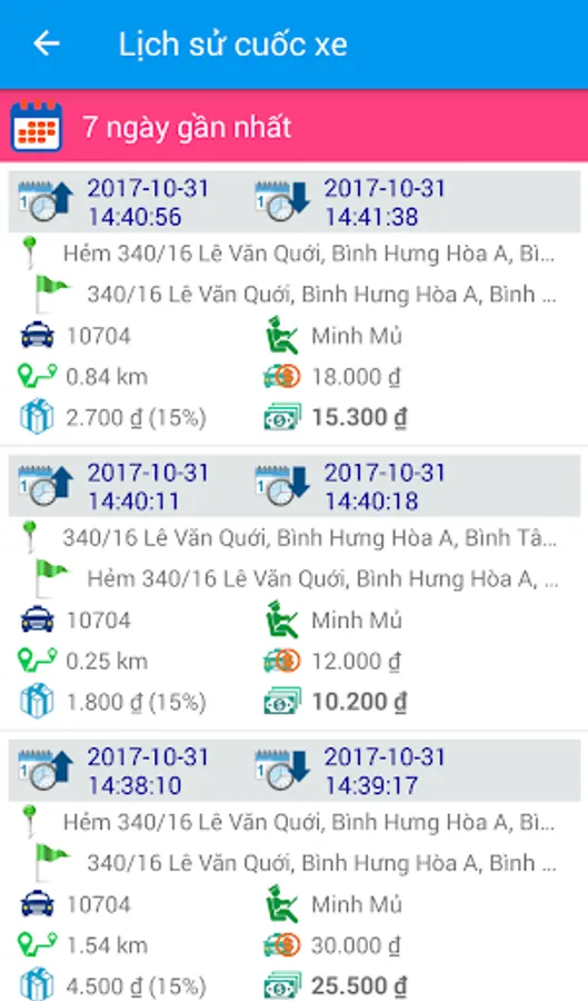 * Review the history of your trip with complete information: time, addresses up and down the car, car number, driver's name, distance, metered charges and promotions, billing charges