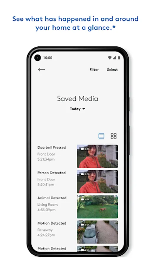 - View event video history so you can see what your cameras captured if you’re home or away*
