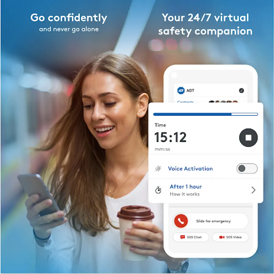 • TrackMe: Set a timer for any activity and invite ADT to track you via GPS. If you don’t stop the timer and we can’t confirm you’re safe, we’ll alert 911 and your Guardians. Connect with ADT 24x7 for 'virtual walks'.
