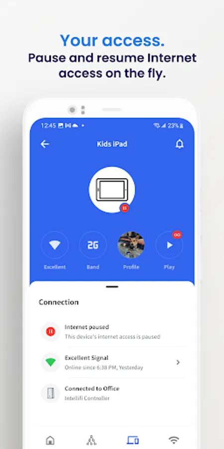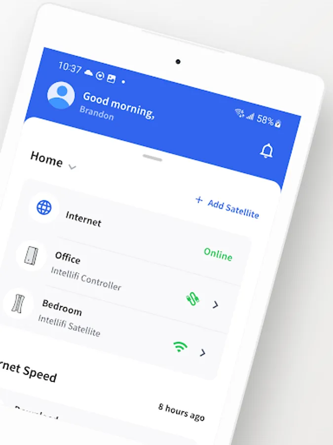 The Intellifi mobile app by Adtran is the ultimate home Wi-Fi network assistant. With its intuitive interface and advanced features, Intellifi empowers you to set up, manage, secure, and personalize your Wi-Fi network for all family members and guests.